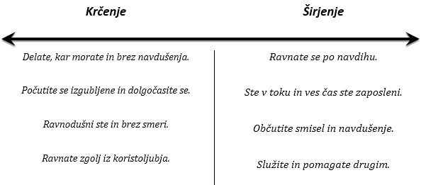 Tabela: Smisel navdiha po katerem lahko zaznamo lastnosti, kaj nas krči in kaj nas širi.